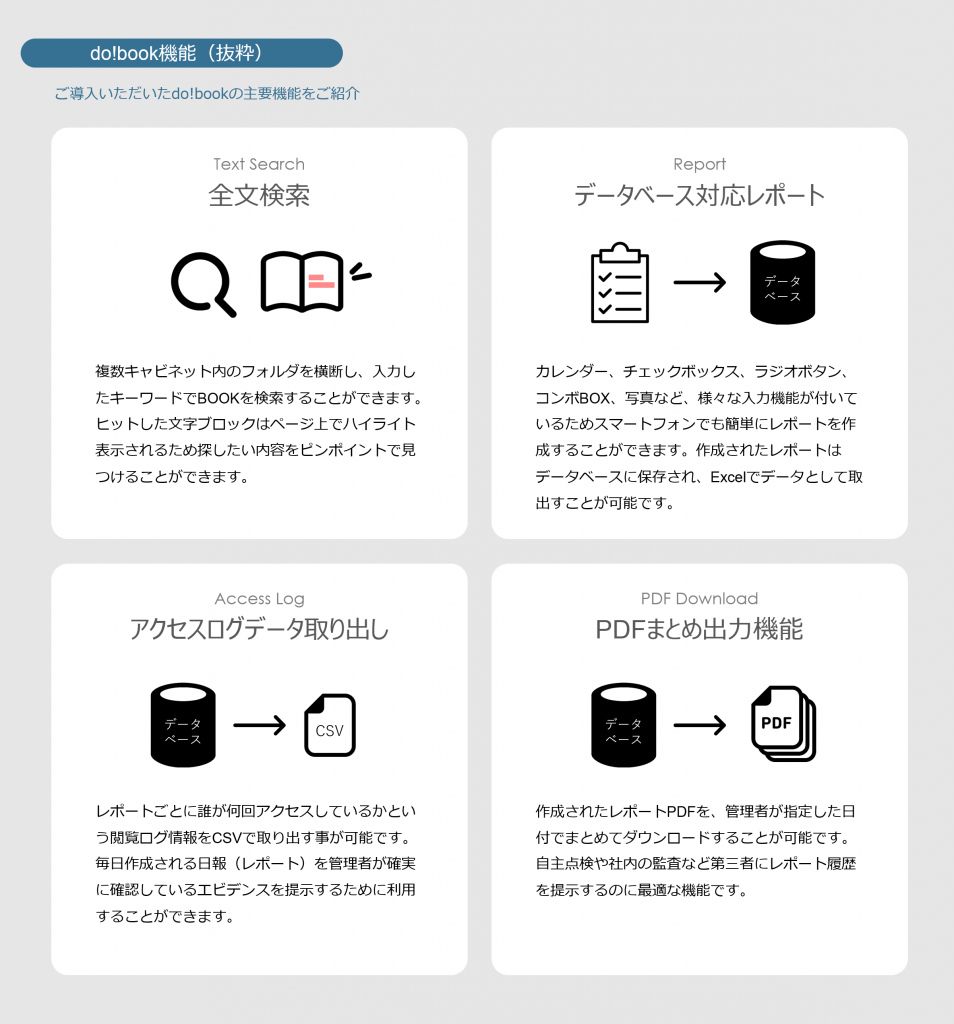 do!bookではユーザがレポートを確認すると自動でアクセスログが記録され、1ヵ月ごとなど一定期間でまとめてCSVで簡単に保管できるため紙で運用していた時と比べてとても効率化できました。