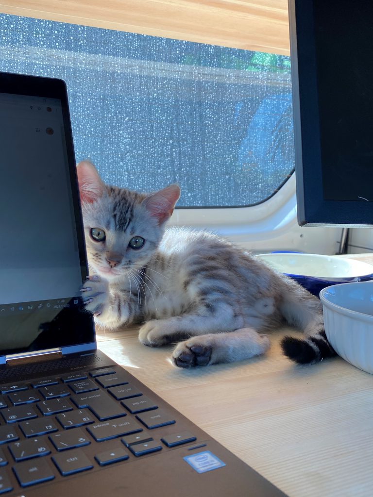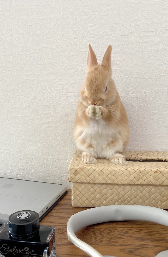 ネコの「モナーク」とウサギの「リッジ」が野営社長のかわいい相棒です。